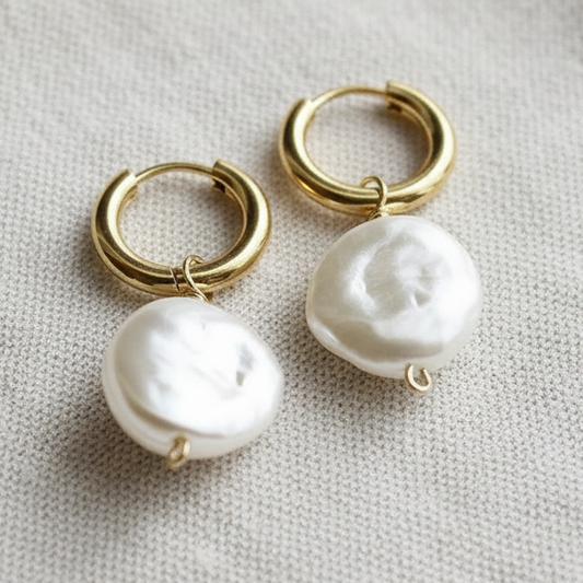 Gold Coin Pearl Huggies
